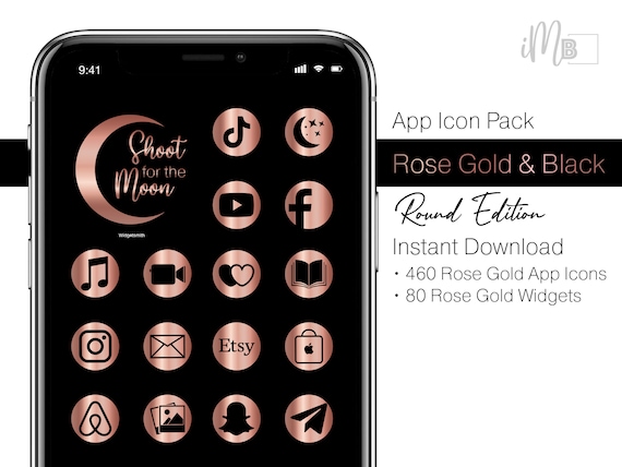 Ios 14 App Icon Pack Rose Gold Black Aesthetic Ios 14 Icons Etsy