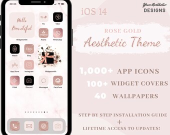 Rose Gold Glitter Ios 14 Aesthetic Theme Cute Rose Gold App Etsy