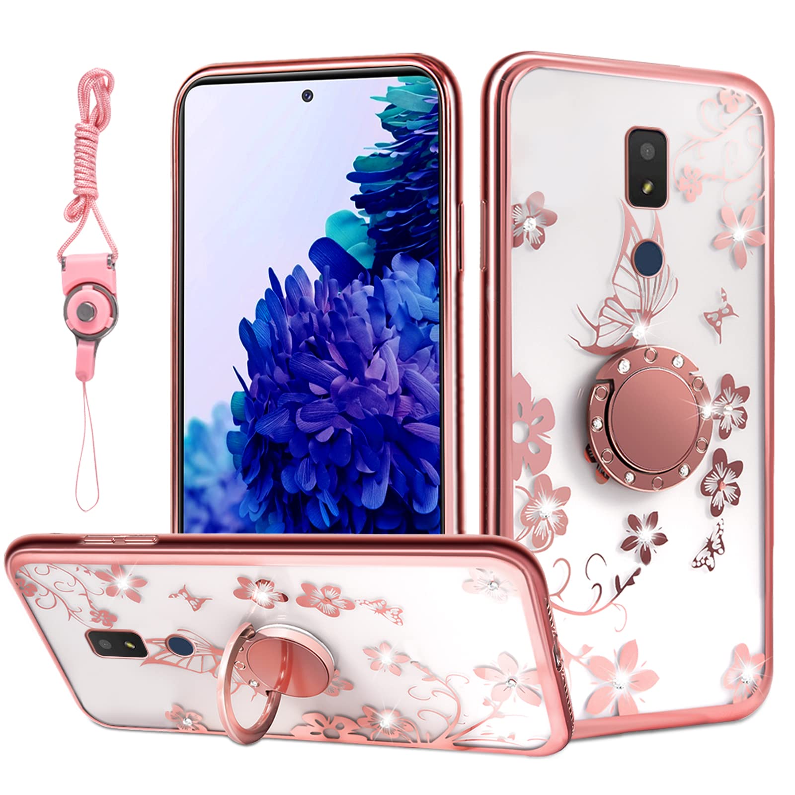 Amazon Com For Cricket Icon 3 Phone Case Women Girls Cute Floral Butterfly Clear Cover Bling Glitter Ring Kickstand Slim Soft Tpu Shockproof Protective Case With Neck Lanyard For Cricket Icon 3